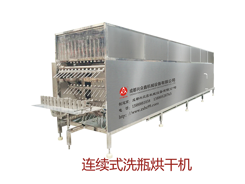 我公司自主研發(fā)的連續(xù)式玻璃瓶洗瓶烘干設(shè)備,能在沖洗玻璃瓶內(nèi)外的同時(shí)、同步烘干玻璃瓶的內(nèi)外達(dá)到與灌裝線的同步運(yùn)行。解決了食品生產(chǎn)企業(yè)的玻璃瓶在需要洗瓶的同時(shí),又必須在灌裝前******玻璃瓶里外干燥的困擾。提高企業(yè)生產(chǎn)能力。